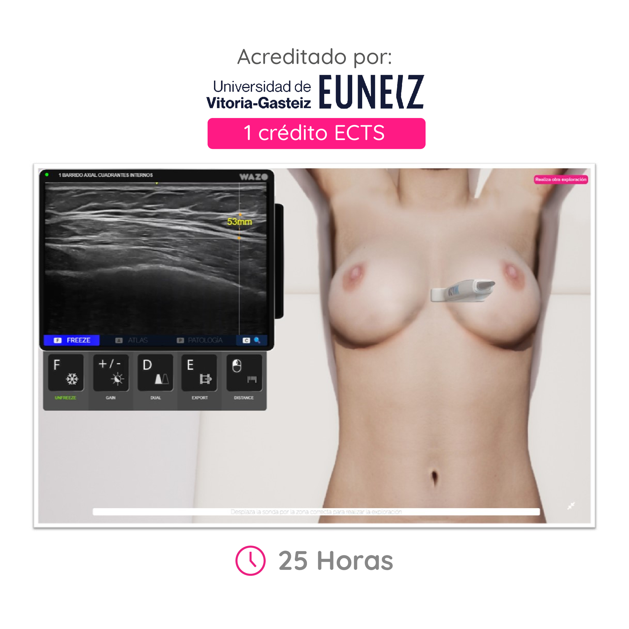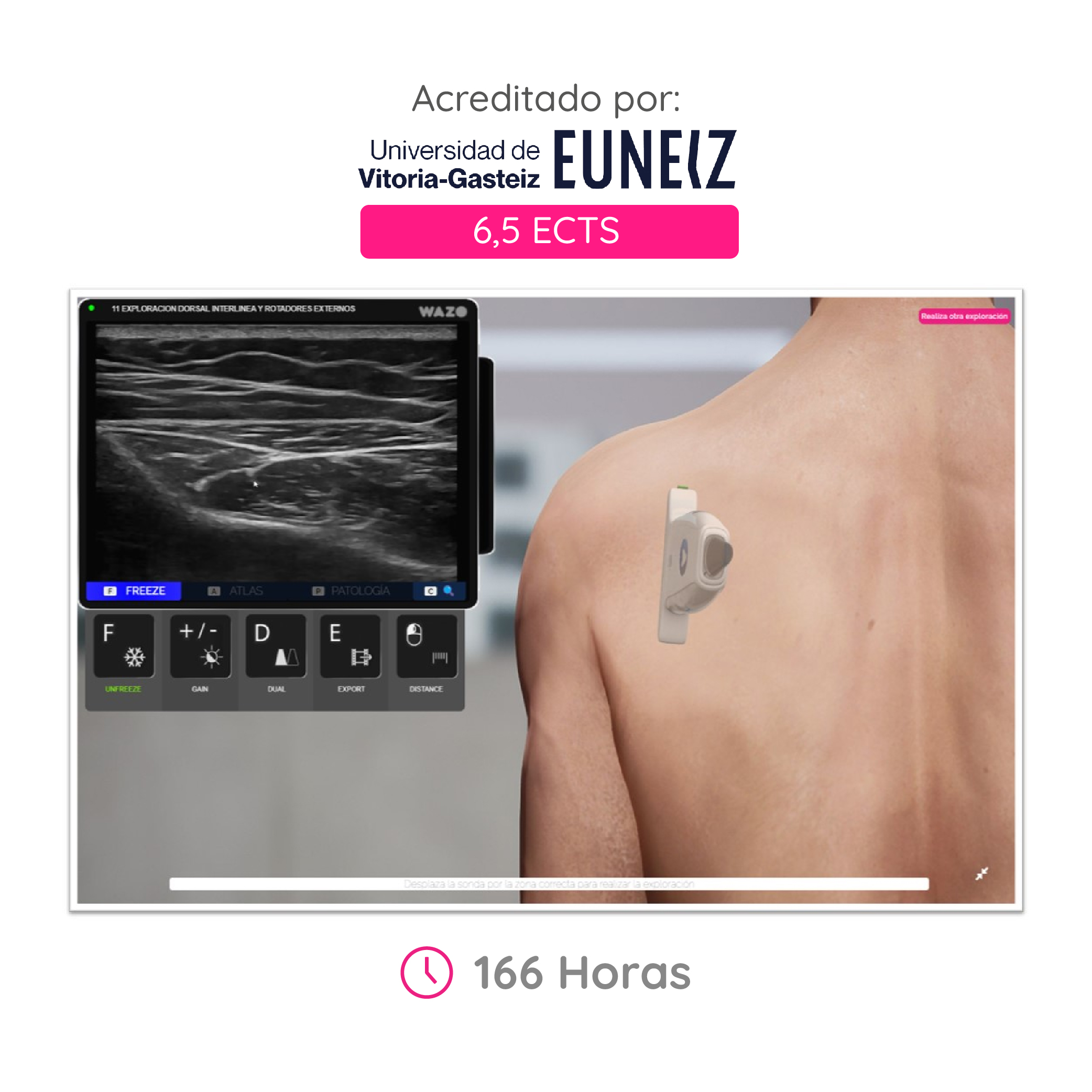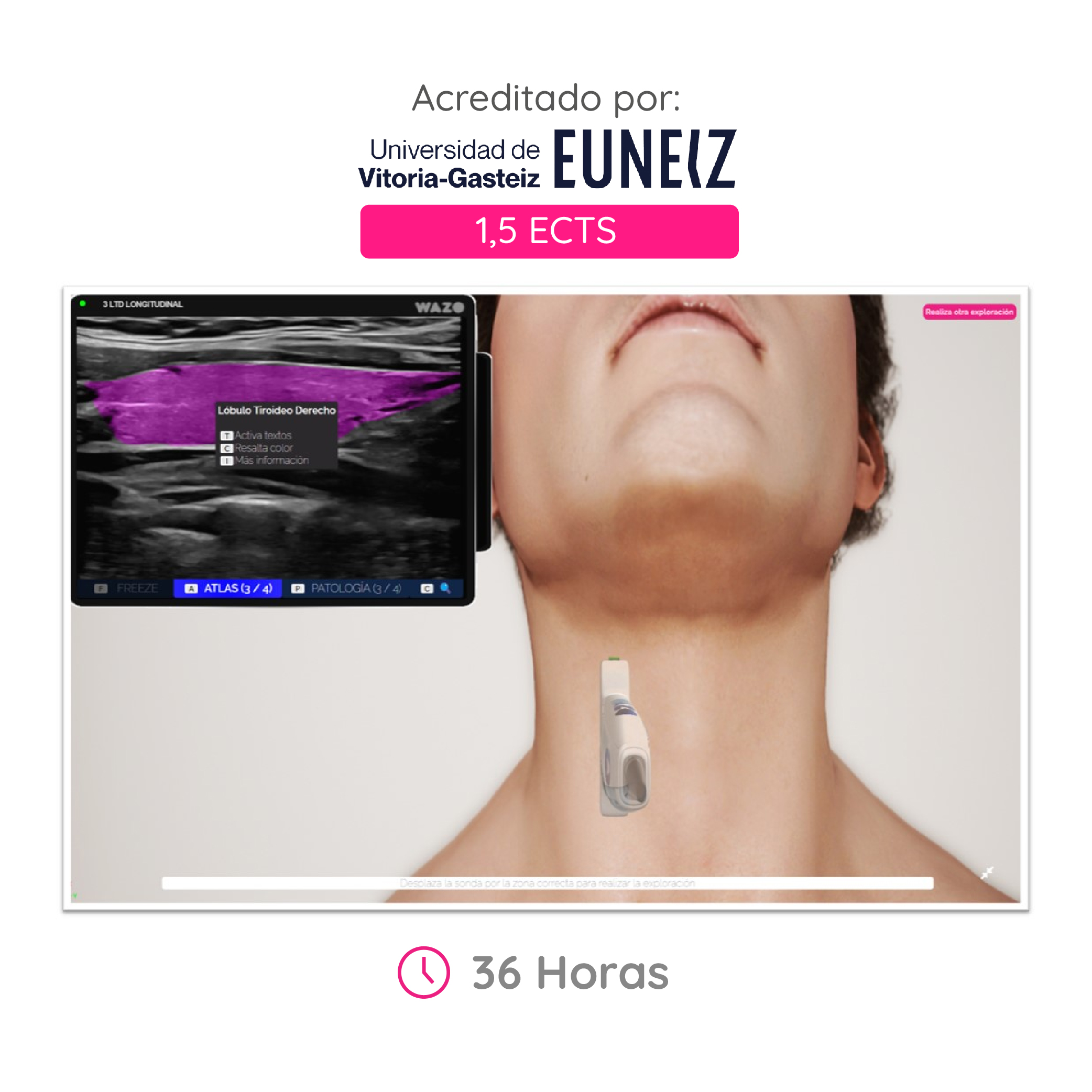Profesionales en ultrasonido te guiarán paso a paso en la realización de los diversos estudios utilizando la última tecnología de WAZO. Encontrarás un entorno flexible pudiendo acceder a un sin fin de posibilidades de personalización en tu formación.